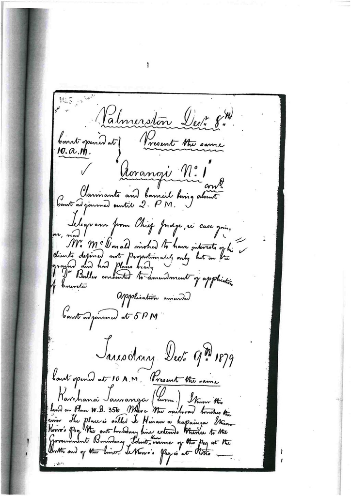 Otaki Maori Land Court Minutebook - 8 December 1879.