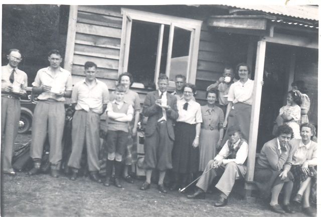 Foxton Golf Club’s first closing day in 1949 Group of men and women in front of clubhouse.
