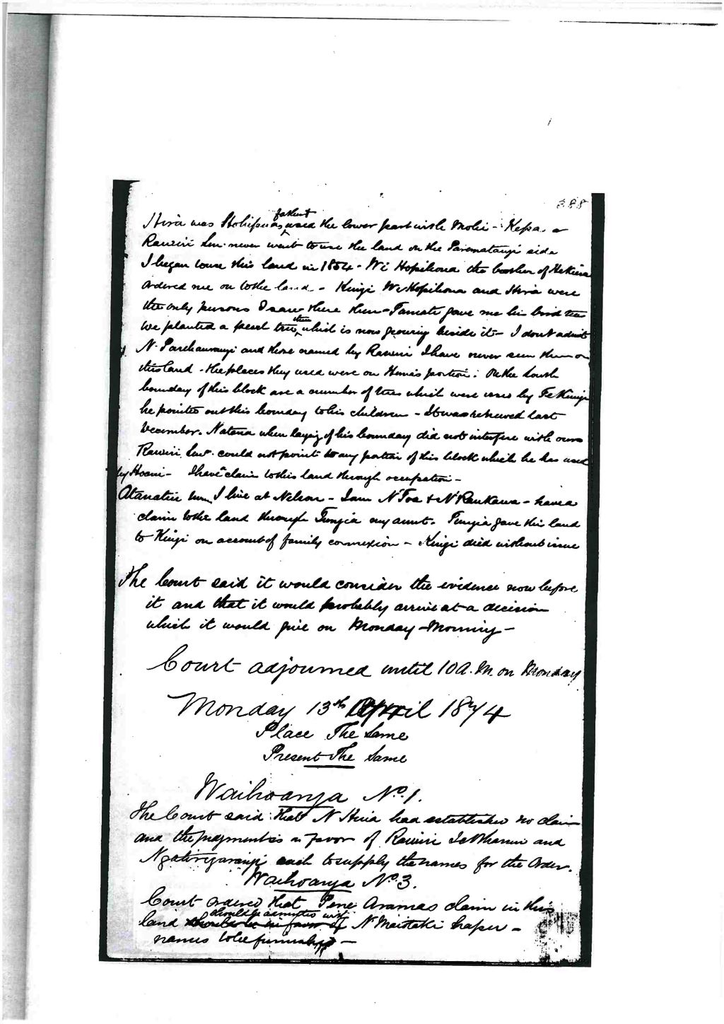 Otaki Maori Landcourt Minutebook - 13 April 1874