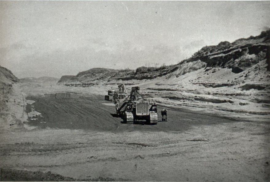 dis 7.00/Whirokino Cut Construction on Manawatu River 1942/2 machines in cut looking along/