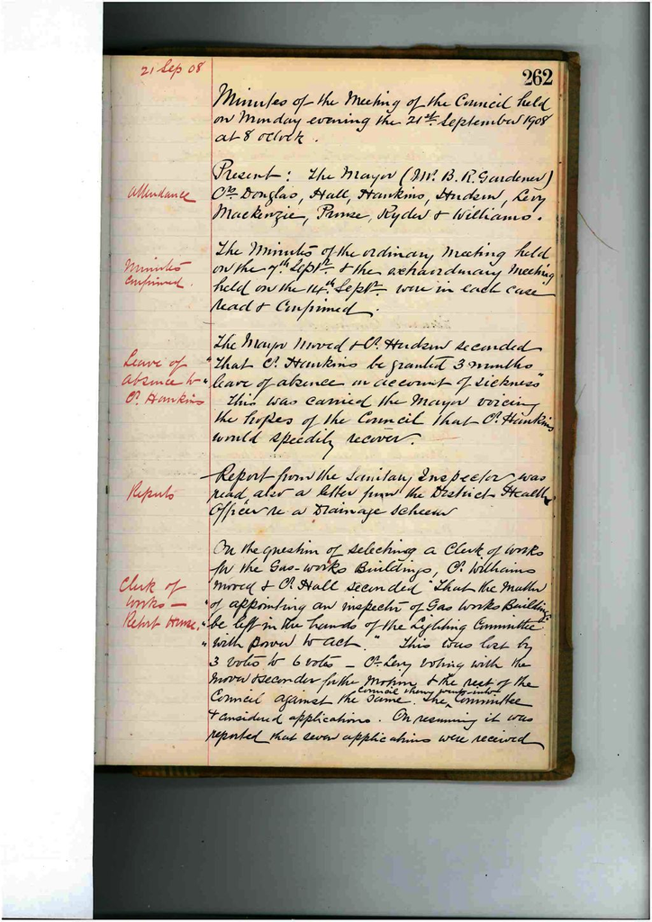 On the question of selecting a Clerk of Works for the Gas Works Buildings, Cr. Williams moved and Cr. Hall seconded “That the matter of appointing an inspector of Gas Works Building be left in the hands of the Lighting Committee with power to act”. This was lost by 3 votes to 6 votes – Cr. Levy voting with the move and seconder for the motion and the rest of the Council against the same. The Council then went into Committee and considered applications. On resuming it was reported that seven applications were received and appointment of Mr L Arcus was recommended. The appointment was confirmed.