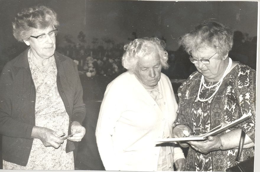 Three older women (unidentified), flower show judges ? 1 B&W photo print