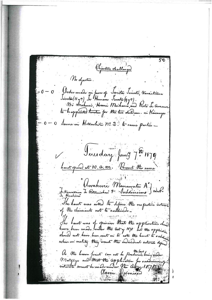 Otaki Maori Land Court Minutebook - 7 January 1879.