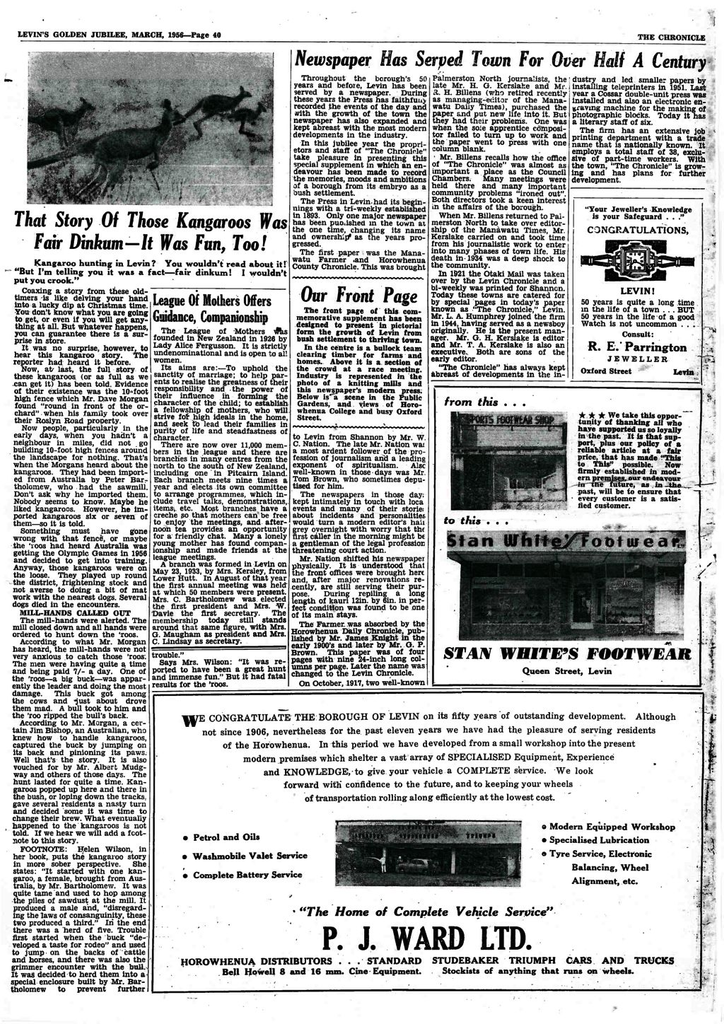 4) Newspaper has served town for over half a century.Throughout the borough's 50 years and before, Levin has been served by a newspaper. During these years the Press has faithfully recorded the events of the day and with the growth of the town the newspaper has also expanded and kept abreast with the most modern developments in the industry.