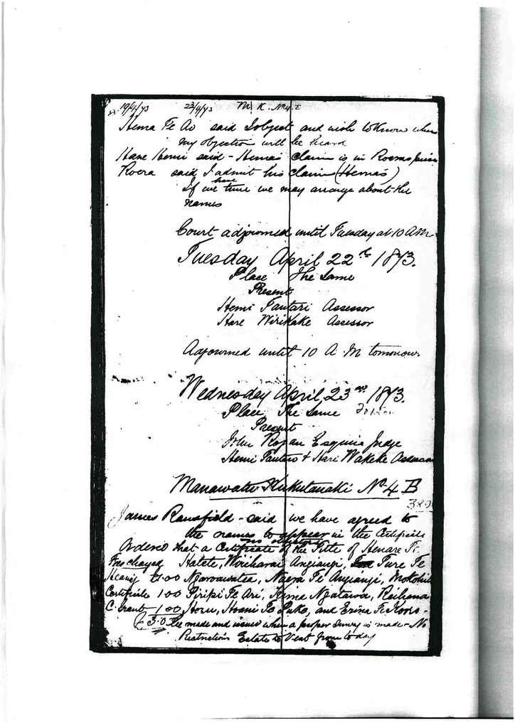 Place – the same Present – John Rogan Esquire – Judge Hemi Taurari, Hare Wirikake – Assessors