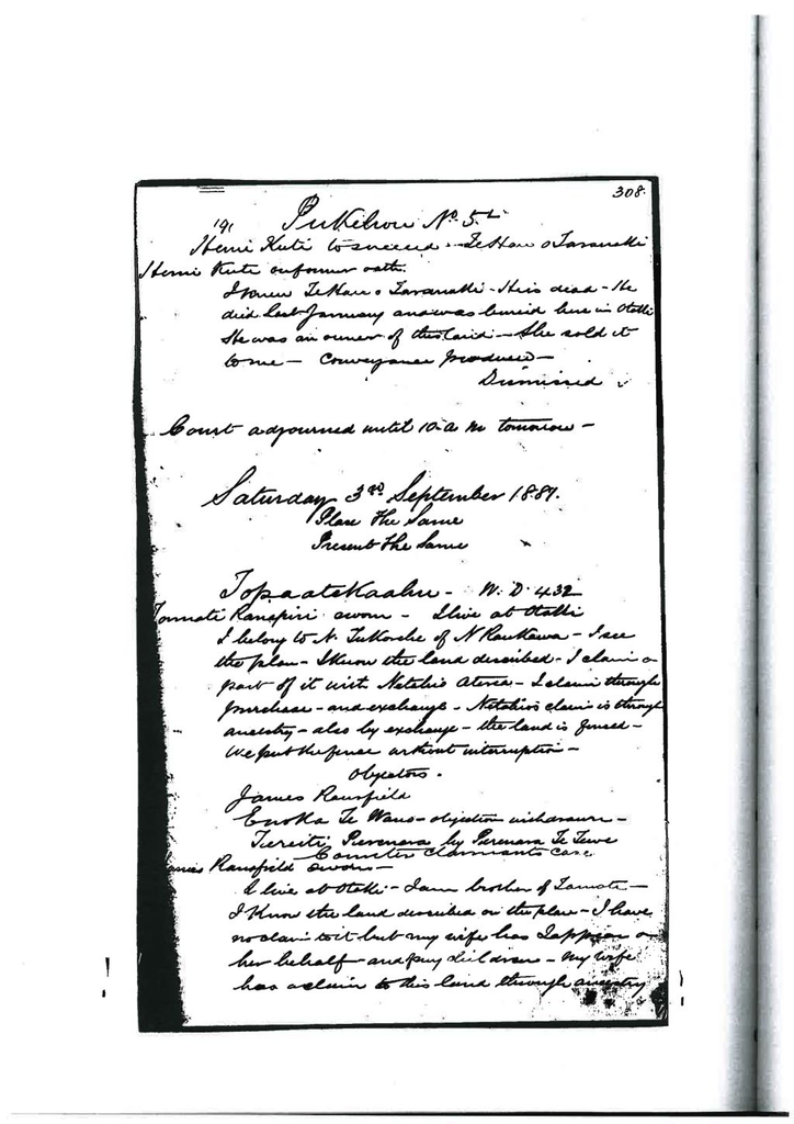 Otaki Maori Land Court Minutebook - 3 September 1881.
