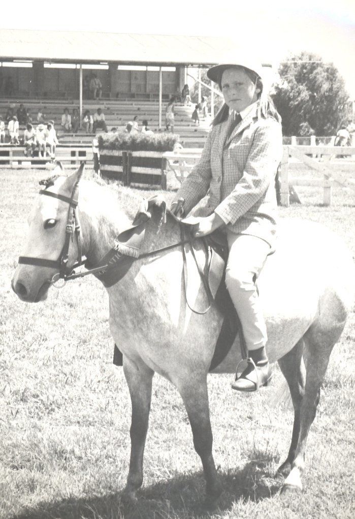 Penciled on back - Jane Eaton with her pony Dinkie-Di which was judged champion Pony under 13.2 hands at the Levin Showgrounds. Sat. Jan. 27, 1968.