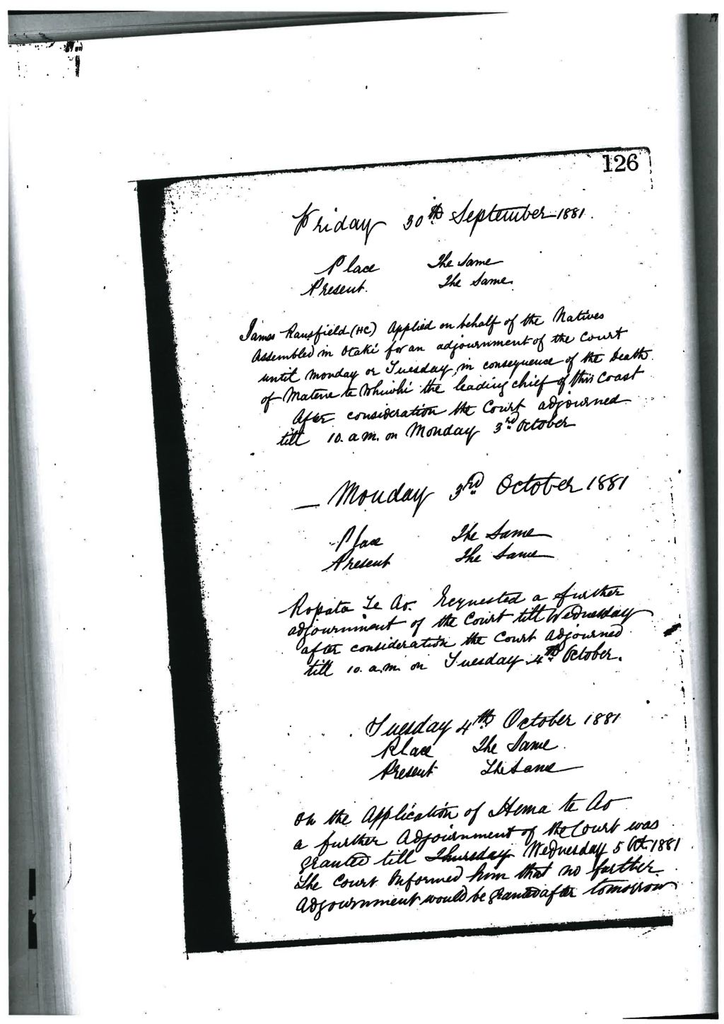 Otaki Maori Land Court Minutebook - 3 October 1881.