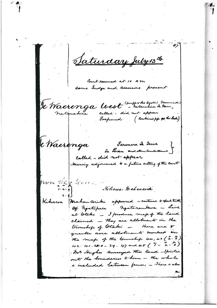 Ropata Hurumutu – appeared – to oppose Kiharoa and to claim lots Nos. 44 and 43.