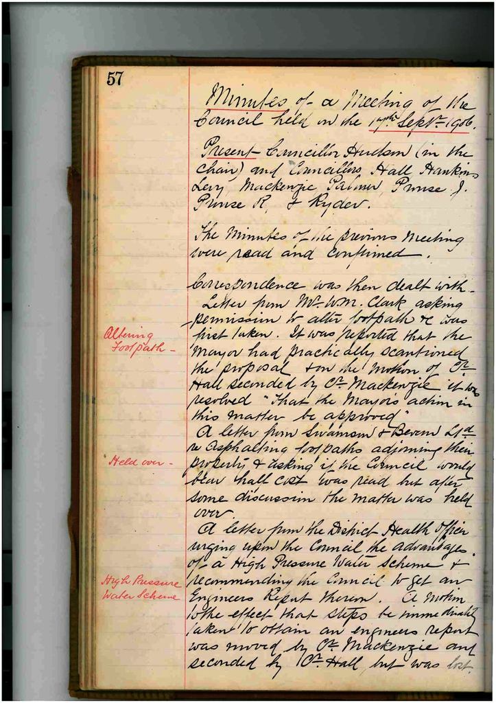 Cr. Levy then moved and Cr. J. Prouse seconded, “That the matter of a high pressure water scheme be referred to the Sanitary Committee for consideration and that the Clerk gather all necessary information”. This was carried.