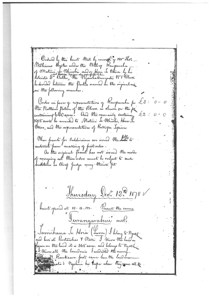 Otaki Maori Landcourt Minutebook - 12 December 1878.