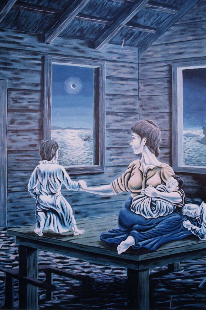 Mural on the wall of the Foxton Service Centre depicting one of the floods that were common in the Foxton area around the 1880’s