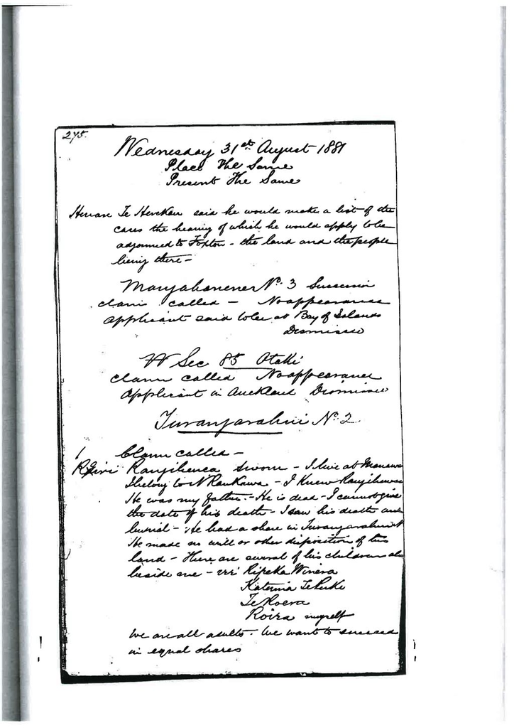 Ordered that Winiata Potaka, Nepia Taratoa, Erenora Maraki and Akuhata Hemi (13 years) ought to succeed Atareta Taratoa.